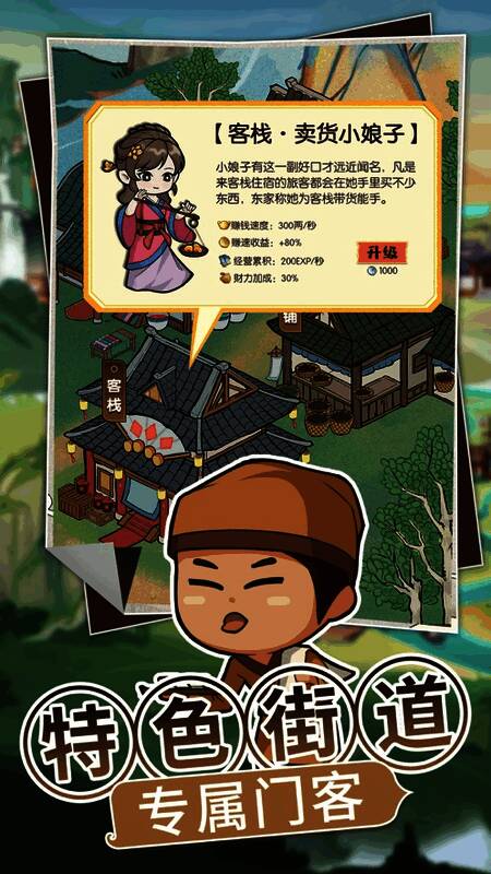 可完成多样交互,回到古代做商业向导,开启模拟经营。能建立自己的客栈,逐步打造商业王国,玩法简单。自由建设酒店、邮局、商店,优化商业模式,持续增加收益。