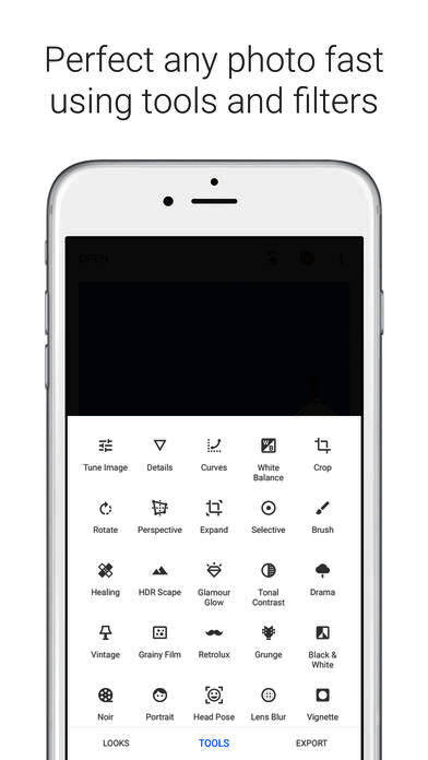 Snapseed配备了多达29种实用工具与滤镜,涵盖从基础修复到高级调色的各类需求。例如“修复”工具可以轻松去除照片中的杂物,“HDR景观”功能可增强画面细节层次,“结构增强”则能有效提升图像质感。此外,它还支持JPG和RAW格式文件的导入,满足不同用户对画质的高要求。