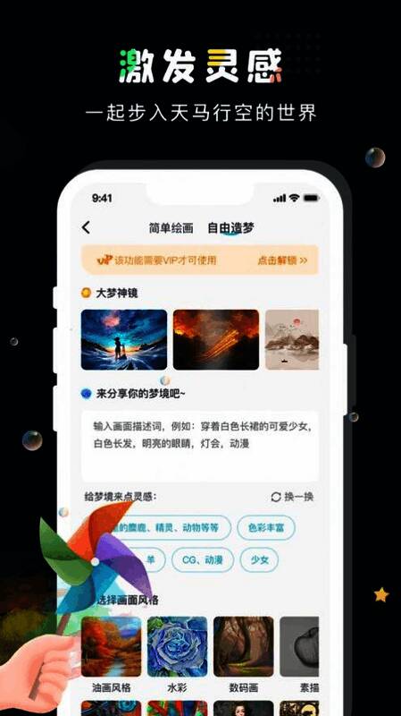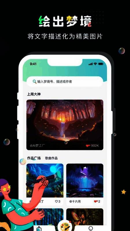 AI梦工厂是一款画风多变、操作便捷的AI绘画工具类App,专为热爱创作与艺术的用户打造。无论你是否具备美术基础,只需输入文字条件,即可一键生成创意绘画内容,真正实现“灵感变现”。该应用不仅提供多种风格的绘画生成功能,还设有互动社区,方便用户交流作品、激发灵感。
