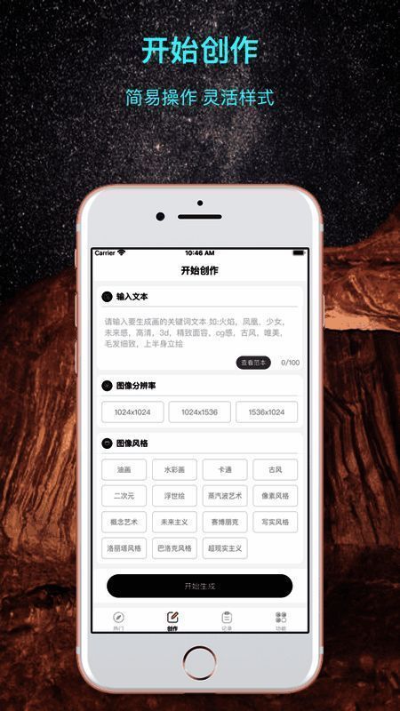 经过实际体验,《AI创作绘画》的表现令人印象深刻。它的AI生成速度极快,且画面质量稳定,能够准确还原用户描述的场景与风格。同时,界面简洁直观,功能分布合理,即便是第一次使用的用户也能快速上手。