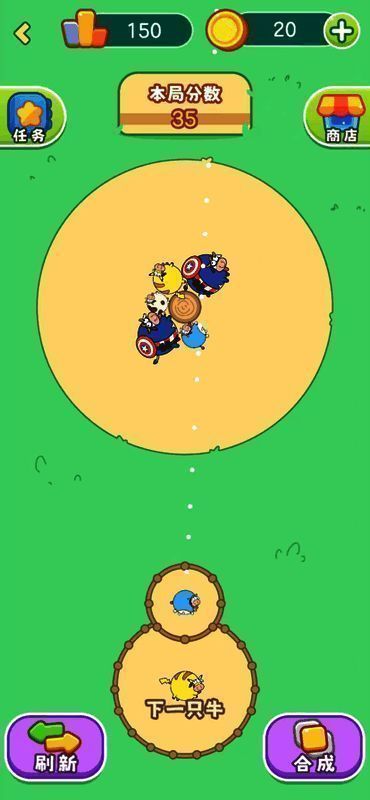 游戏操作简单直观:点击图标即可发射奶牛,当发射的奶牛与上方相同等级的奶牛相遇时便可进行合成,生成更高等级的奶牛。随着等级提升,玩家可不断挑战自我,刷新最高分数纪录。