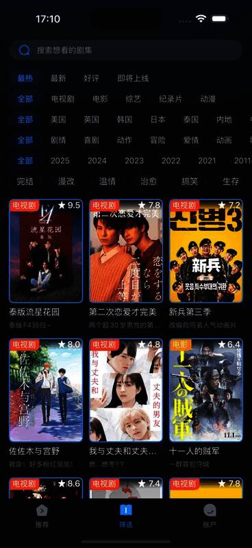 平台内拥有丰富的影视剧资源,涵盖电影、电视剧、综艺、动漫等多个类别,并且每天都会实时更新最新内容。主页还会根据热度推荐大量优质影片,帮助用户轻松发现感兴趣的作品。