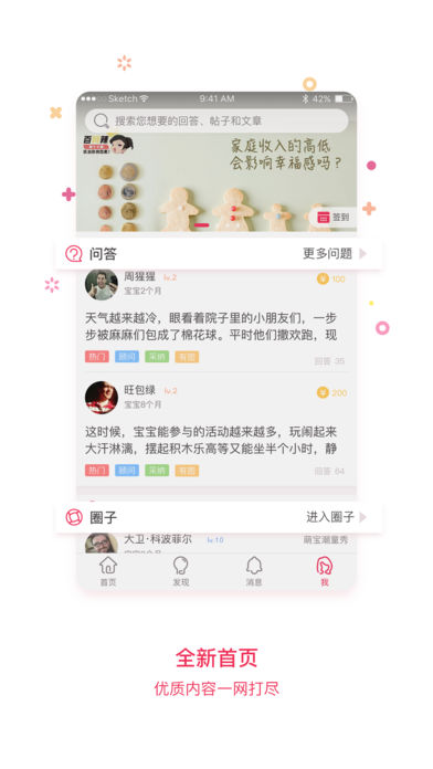 《靠谱妈》APP是由北京麦田互动网络技术有限公司倾力打造的专业育儿社区,专为新手妈妈量身定制。平台汇聚超200万活跃宝妈用户,日均问答互动量破15万次,DAU稳定在85万+,被众多母婴KOL称为“手机里的育儿百科全书”。涵盖科学备孕、孕期管理、0-6岁育儿实操、辅食制作、早教启蒙等全周期内容,真正实现“从怀孕第一天到宝宝上幼儿园”的一站式陪伴。