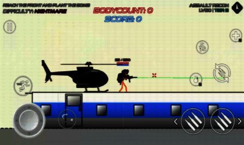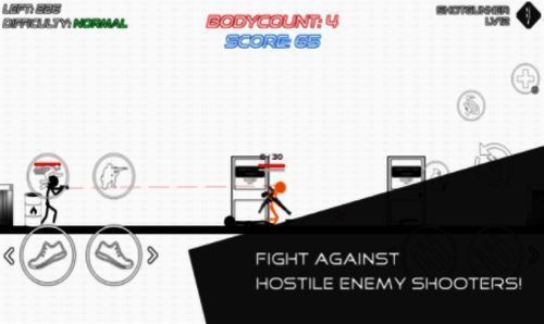 3、游戏按键设计经典,屏幕左侧控制角色移动,连续两次点击可跳跃躲避子弹。