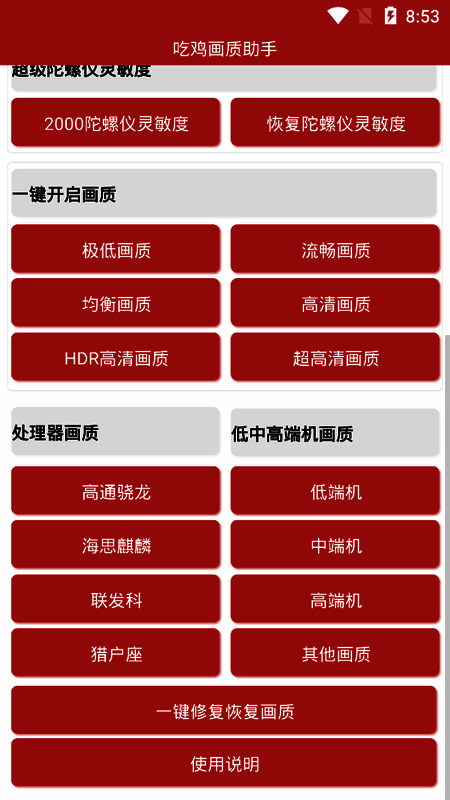 吃鸡画质助手是一款强大的图像提升助手,通过简单操作能让游戏画面达到极致流畅,且界面易于修改,不妨一试。