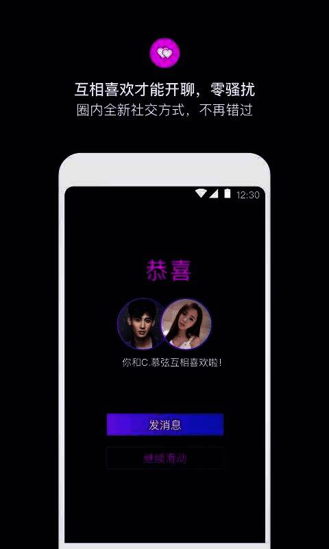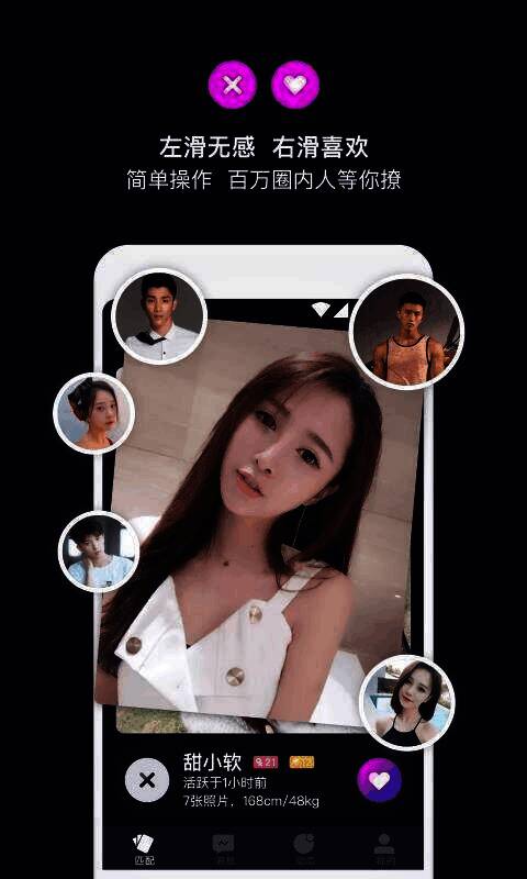 操作简单,喜欢就点击对话发消息,不喜欢直接滑动拉掉。相互喜欢功能助力有好感的用户交流,非互有好感则无法交流。所有用户需注册真实有效信息,否则无法对话。
