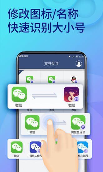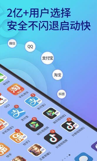 能双开微信、QQ、陌陌等几乎所有应用,支持创建游戏小号来自己组团工会,让工作和生活互不干扰。而且其包体很小,适配大部分智能手机。