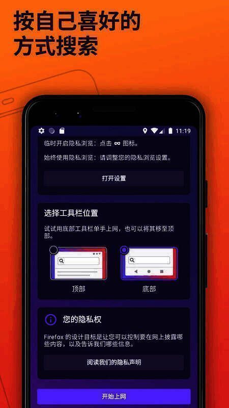 Firefox火狐浏览器苹果手机版是一款极为安全的移动浏览器,它将快速且安全的网页浏览体验作为核心服务。首页设有新闻资讯板块,能为用户提供详尽的全球新闻。其高效的页面加载速度大幅减少了网页等待时间,使用户可迅速访问所需信息,节省时间。一系列安全特性提供在线保护,能实现恶意网站拦截、隐私保护、安全清洗等服务,带来纯净的在线体验。此外,还提供多种功能插件,安装简便且易于管理。