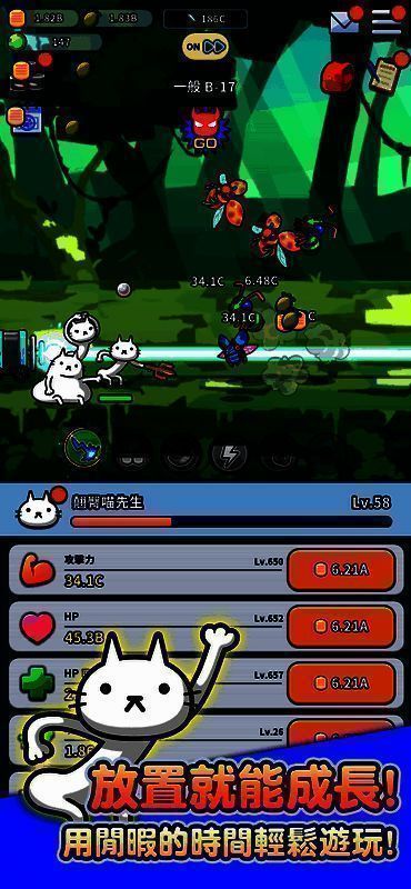 2、虽是放置型游戏,但策略性很强,玩家需合理运用技能和必杀技才能在战斗中获胜。