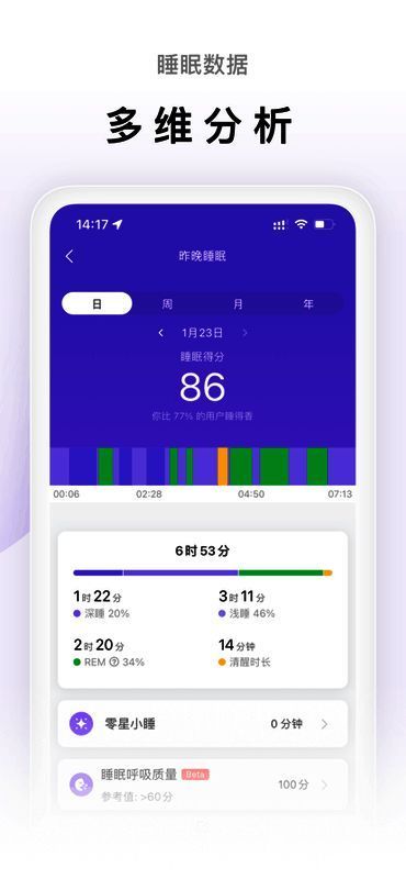 2、拥有贴心睡眠管家,深入分析影响睡眠质量的因素并提供改善建议。