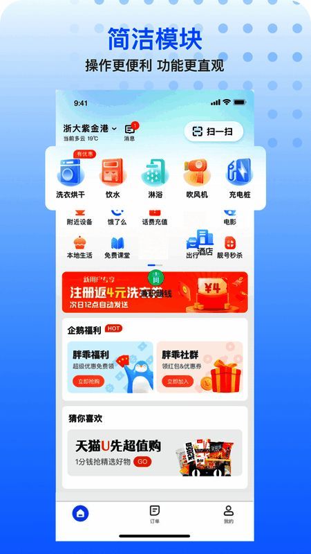胖乖生活是一款便捷的自助共享设备控制软件。它内置一站式智能生活服务板块,用户能借助该 app 快速使用洗衣烘干、充电、吹风机等共享设备服务,还能进行手机充值、预订酒店、电影票和旅行等,在家就能预订使用附近共享设备,满足日常需求。快来下载体验!