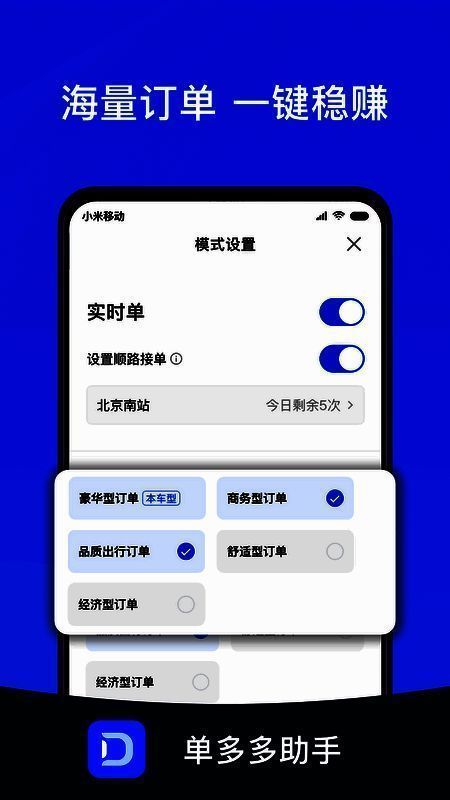 1. 多渠道订单源:单多多助手app连接多个渠道,订单来源广泛,司机能接到更多订单,增加赚钱机会。