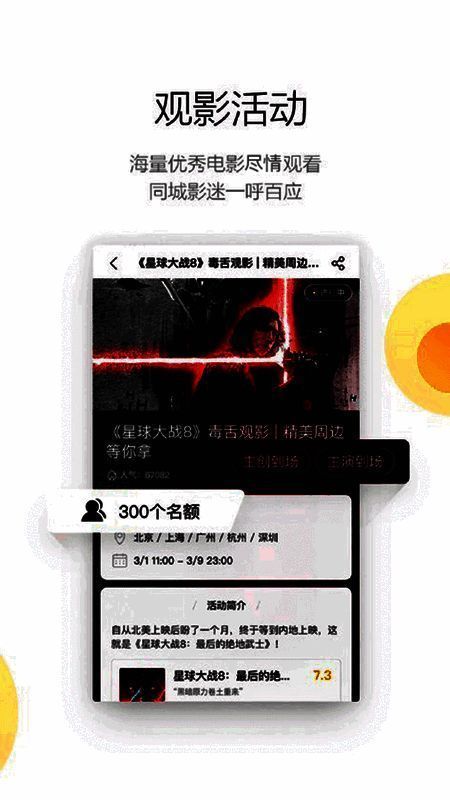 - 影迷活动:每年超300场免费超前点映和同城聚会,有机会见明星。