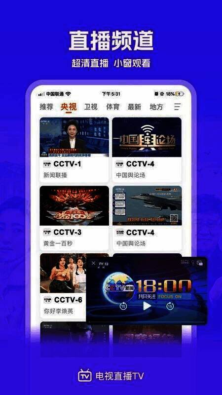 电视直播是一款优秀的电视直播软件,为用户提供高清、流畅的电视频道直播服务。其特点包括操作简单流畅、节目源稳定可靠、支持多线路播放、电视台同步高清直播。用户能观看全国近百个卫视频道和地方频道,支持节目搜索、电视回播功能,随时畅享影院般的视听感受。