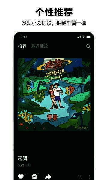 1. 每日个性化推荐歌曲,可随时播放喜爱曲目。