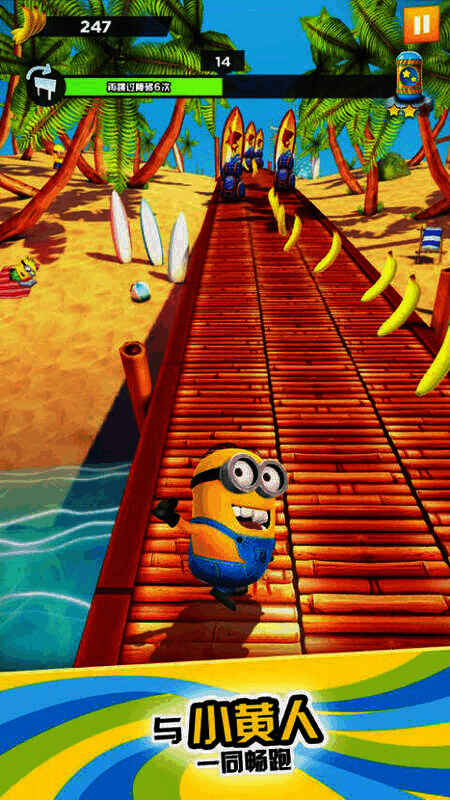 小黄人快跑 iOS 最新版是一款玩法清晰的跑酷游戏,英文名 Minion Rush。它以《神偷奶爸》电影为蓝本,有生动可爱的小黄人形象、全新画面与剧情。玩家化身为爪牙,在多样场景下奔跑,通过吃香蕉、用道具体验刺激跑酷。游戏有智能技能说明和多角色可选,支持 10 种语言。
