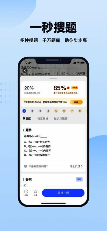 1. 提供智能模拟考试等多元化智能教育服务,助力学生提高学习效率、掌握知识。2. 聚焦大学生校内学习及考研、公考等能力提升。3. 涵盖数以万计教科书和教学辅助工具,有庞大的数百万个问题数据库,且配备详细高质量分析。4. 包含在线课程实践、作业及几十所大学在线课程考试。