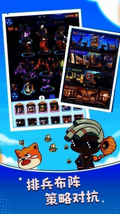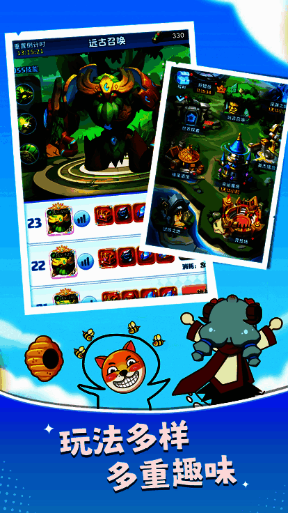 丰富的英雄训练方式,多样的卡牌英雄,各有不同战斗力与属性。超凉桶模式可手动操作,有华丽形象和经典场景,还有采摘蘑菇等掌机游戏。