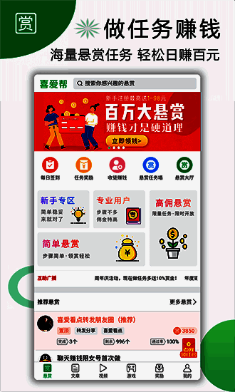 4. 做任务赚赏金:众多简单小任务,完成即得赏金。