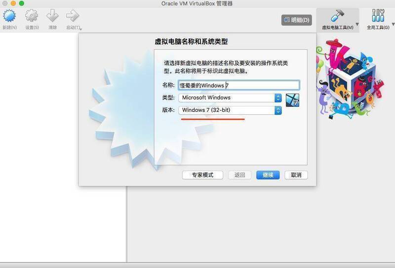 2、后我们新建虚拟机,为你的新虚拟电脑选择好名称、操作系统类型、版本;