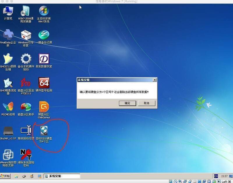 3、选择启动PE光盘系统,双击自动换分硬盘为4个1区,按照步骤一路安装即可。