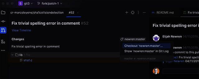 现在,直接从编辑器提交更改变得更快更容易。 编辑一行代码后,点击装订区域中的标记。 在出现的弹出窗口中,您可以修改更改或进行新提交,以及添加提交消息。
