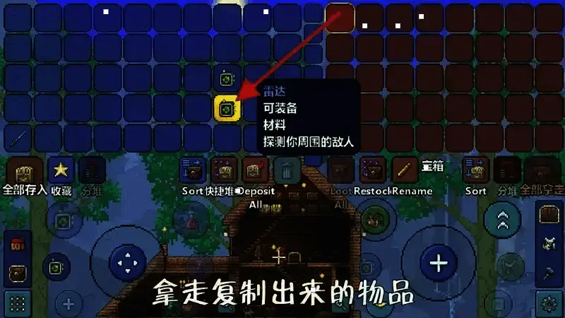 7、再次打开泰拉客户端,进入原本的世界,你会惊异的发现箱子里存放的物品并没有消失,而你的背包中却多出了一份