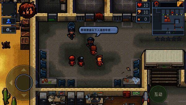 迷你地图:迷你地图在右上角出现,当中会显示时间、你所处的楼层、当前监狱规定活动的名称以及警戒等级。