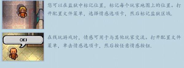 角色简介:这里会注明该名囚犯的工作、服刑时间以及对你的看法(玩家自己的角色介绍没有这一栏)。