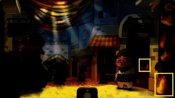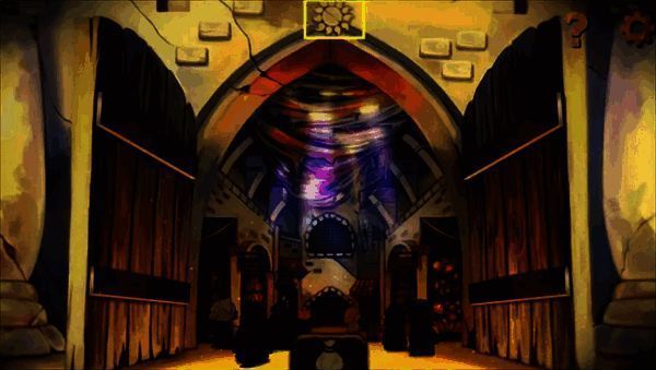 穿过密道后,来到橙色的门处,点击左下角人物斗篷可获得金币。