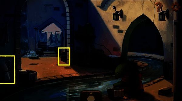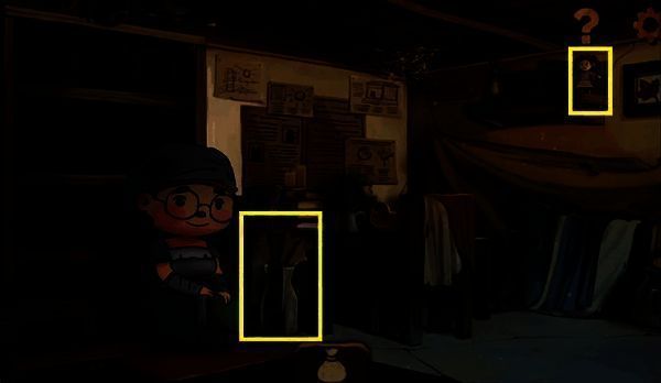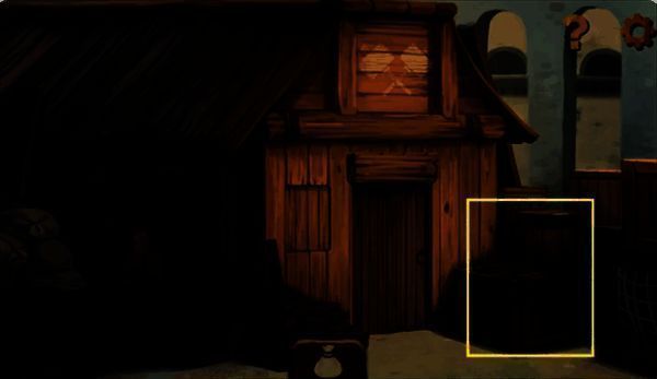 向前到小巷深处,在该处分别拾取「帽子」、胶水,点击图片中的塑料桶及袋子可获得金币。