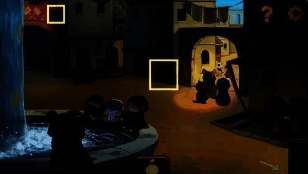 来到喷泉处,点击左上方的窗户与场景中样的木箱可获得金币。