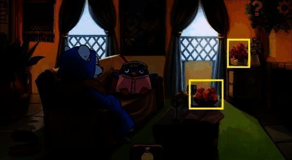 进入到梅的家中后,点击桌上花瓶及右上角的人偶可获得金币。