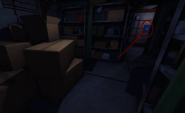 然后在楼梯旁边杂物间的尽头,找到保险箱。