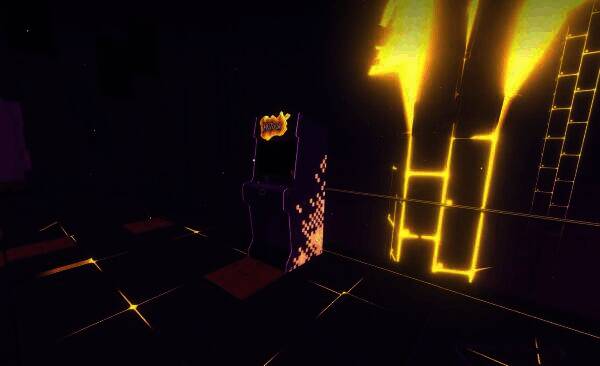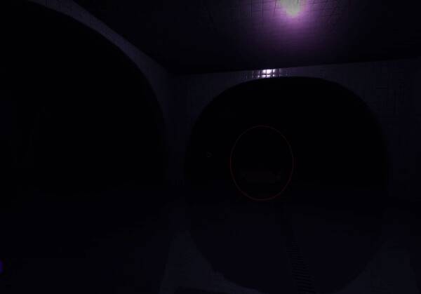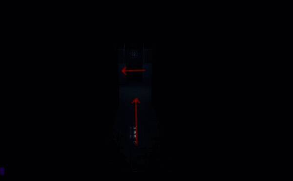 推门后沿着楼梯走到最下面,在一个很黑的空间中,我们能看到一抹黄色的光。
