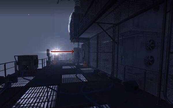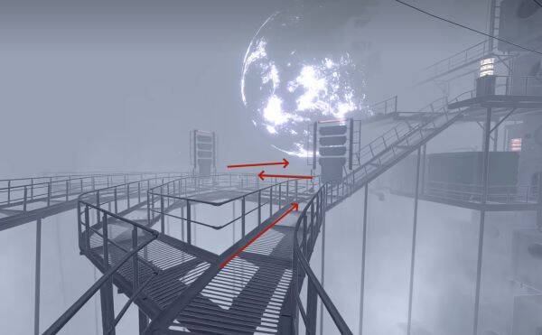 进入房间后我们绕过中间的围栏,从两边走到对面,并打开尽头的白色房门。