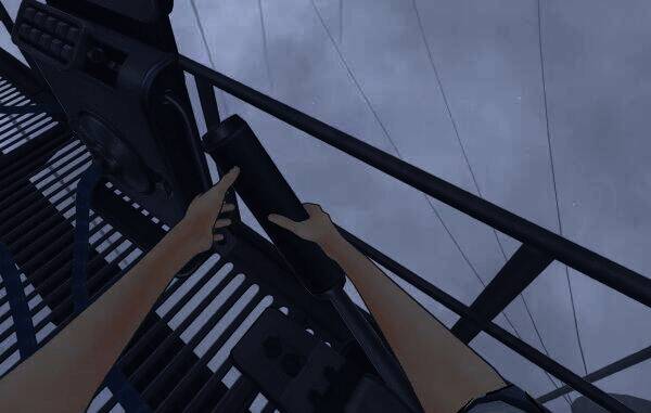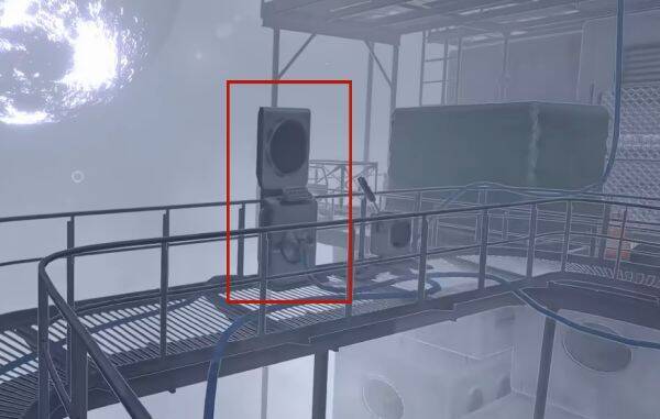 随后在里面的一个破洞位置进去,并和里面的机器进行互动。