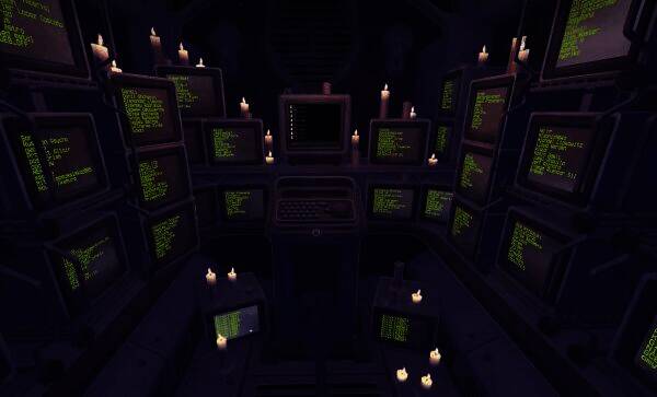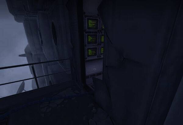 接着我们往前走到尽头,找到一个开关和申请访问的机器,并完成一个小解密。