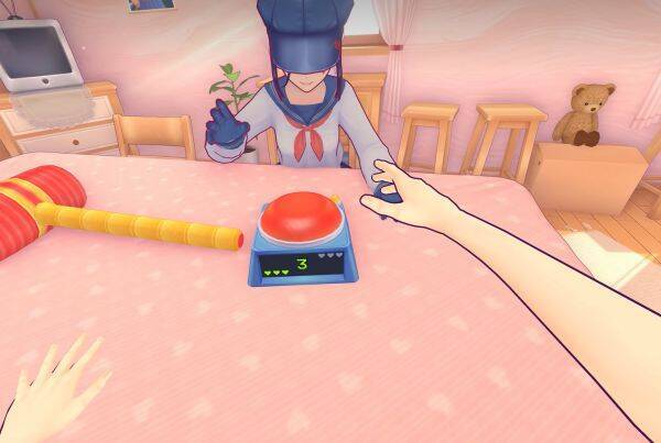 在跳完舞过后,我们来到左边的房间中,点击桌子上的按钮,和米塔玩抢按钮的小游戏。