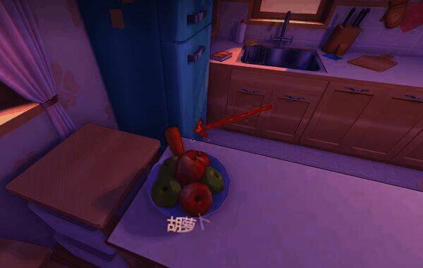 过完剧情后来到厨房,在冰箱旁边的果盘处找到胡萝卜,点一下他就会消失。