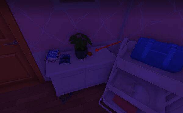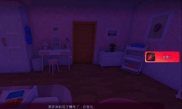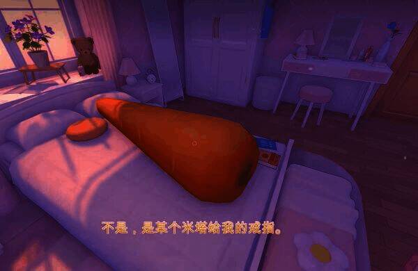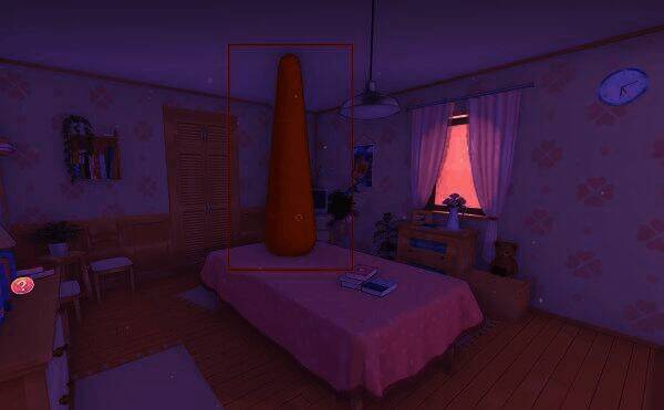 这个胡萝卜第二次将会出现在米塔卧室墙角的一个小柜子上,我们过去抓住。