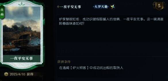 4、最后对话即可完成逸闻并获得说英雄卡【一夜平安无事】。