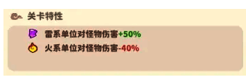 关卡特性:雷系单位对怪物伤害+30%,水系单位对怪物伤害-15%