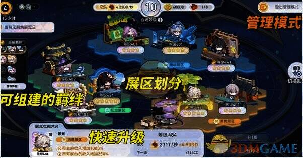 2、【特殊角色】每次升级会场等级,会开启全新的展会增益效果(额外增幅特定角色、某类展台、全场增益)。