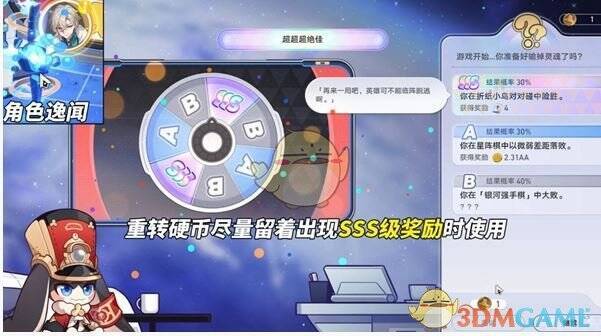 3、可消耗重转硬币重新抽取结果,尽量将其留到出现SS/SSS级别奖励时使用。