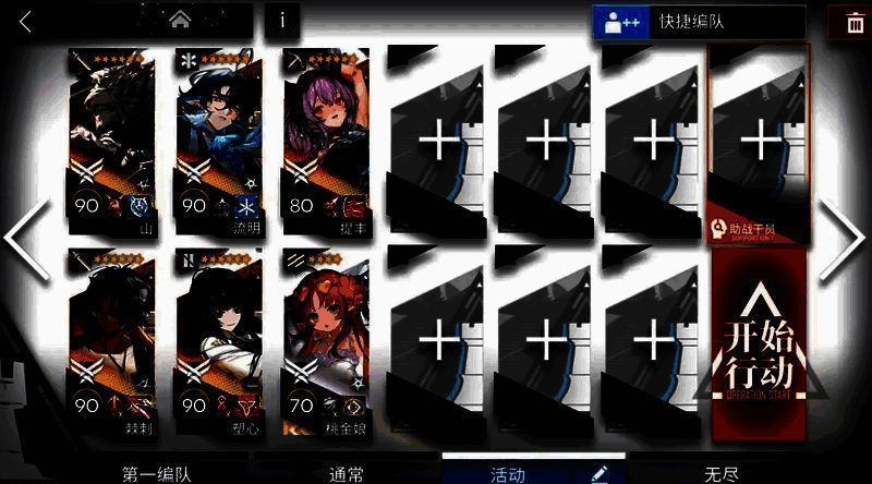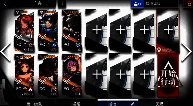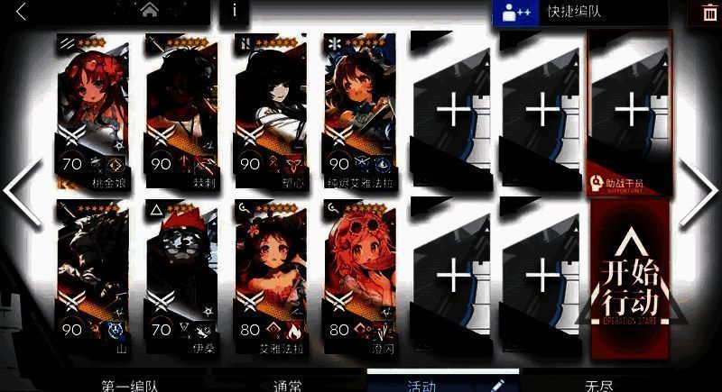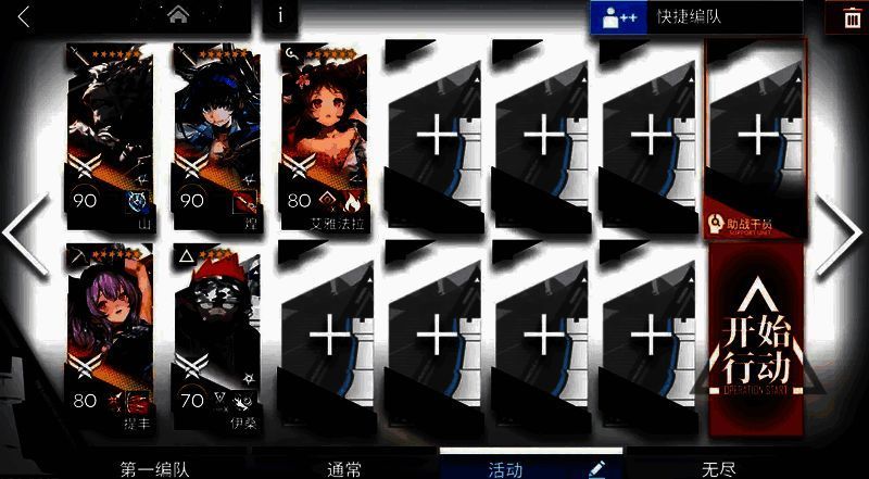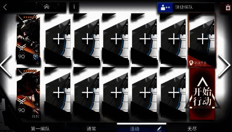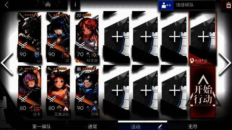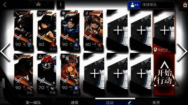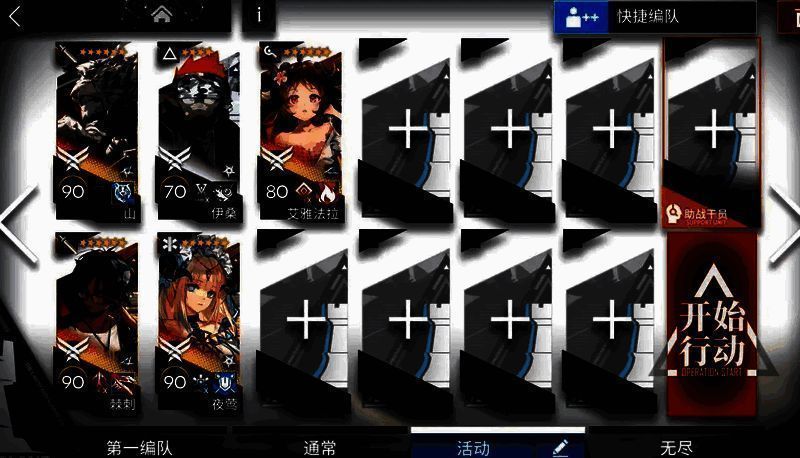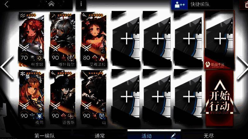 【打法】:煌朝左清线,山中路,提丰朝上,小羊和伊桑控场。敌人密度高,像蝗虫一样涌来。建议带多个群攻单位,小羊配合群攻手输出刚好够用。