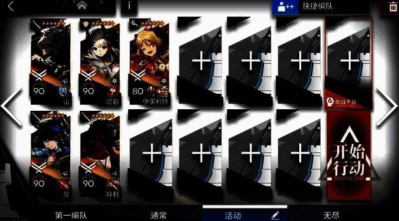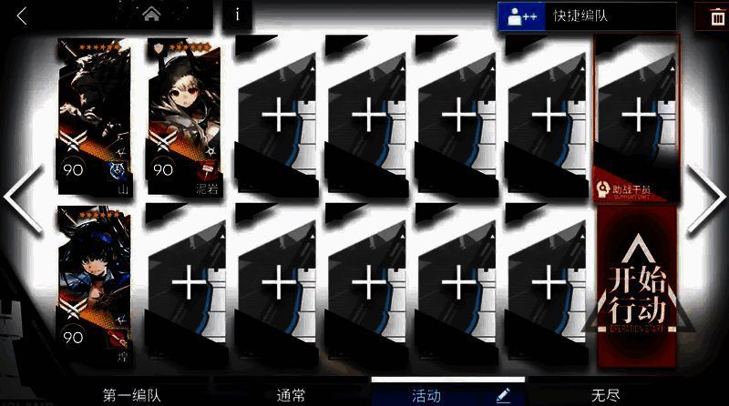 【打法】:前排用煌朝下,山站中路,泥岩朝右。敌人数量多,小怪非常密集,要多阻挡与高回复。山血线可能危险,技能别忘了手动补。