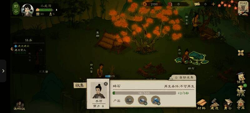 注:鲍小翠就一直采食物就行,资源还是需要什么采什么,小麦出来之前建议不要招孟和,多一个人多一张嘴
