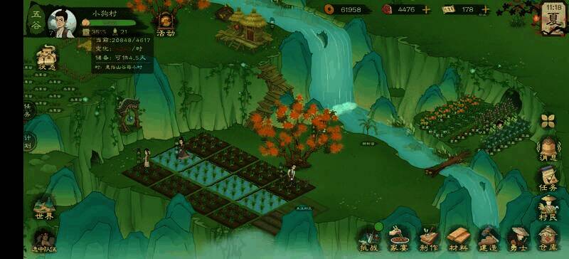 4.可以造农田之后直接8个农田下地种小麦,拿柳大富和另一个人去管田,也可以不管但是产量会低一倍。