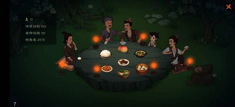 注:家宴是非常重要的环节,不要偷懒不做家宴,饱食度最高的几样菜每天都需要备上,增加寿命经验和体质经验的同时,也可以额外增加饱食度,非常重要!!
